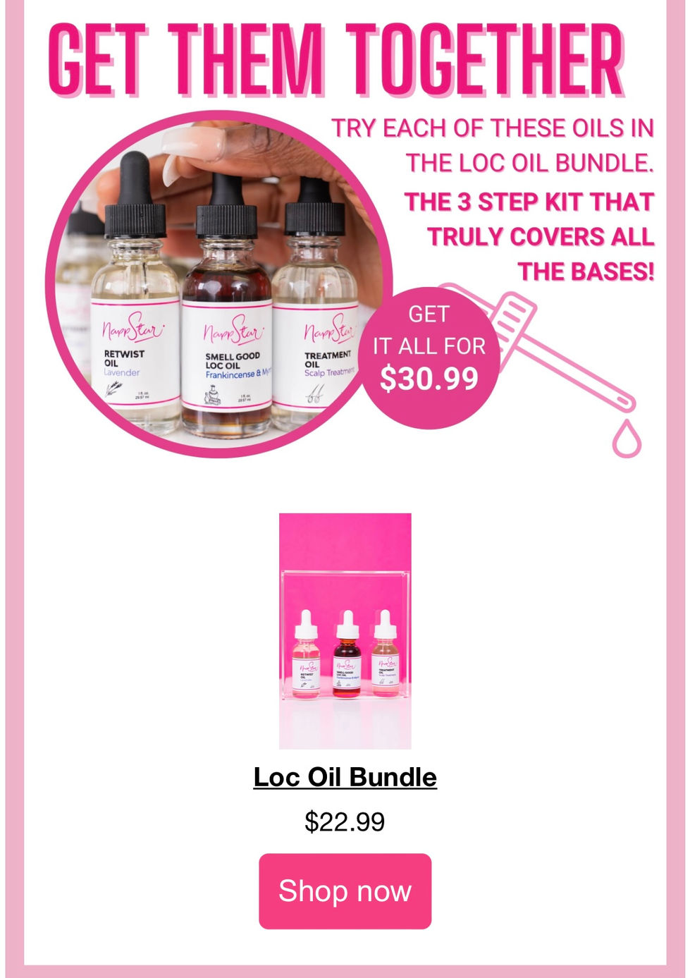 Campaign written, designed and launched by me in January of 2024 to promote a collection of our retwist and Loc maintenance oils.
